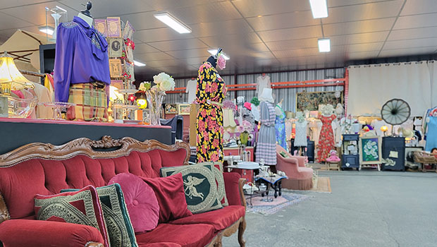 Les biens, textiles, accessoires et habillement, sont stockés dans les ateliers avant d’être mis en vente en boutiques. La décoration des lieux est assurée par les salariés de l’association.