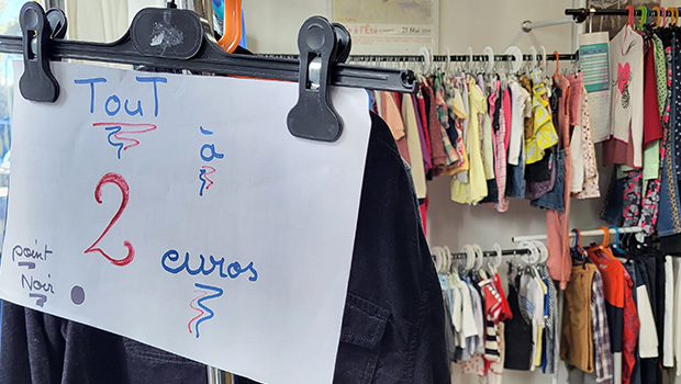 Tous les prix, toujours très bas, et toutes les tailles sont disponibles dans les boutiques de l’association.